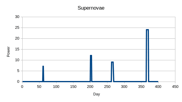 Spite lays dormant, then explodes briefly, only to become silent again. Its default power is 0; to this we add 13, 7, 18 and 6 at 4-, 5-, 7- and 14-day intervals respectively.
