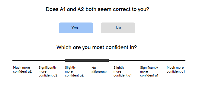 For example, the humans could be presented with the content of argument-nodes, and asked questions about the content they’re shown. And the AIs in a Bayes-game could consider this as an experiment, and make bets on what humans will answer (based on info they are given about the humans in question).