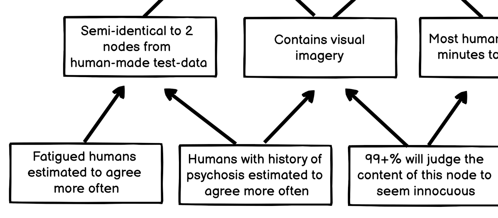 When dealing with argument-networks, an advisable practice (especially in the beginning) could be for the content of the nodes to be obscured by default. Meaning that the human operators by default would be unable to see the actual node content.