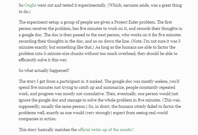 Imaginary friend: Do you have any comments on this excerpt from the post Rant on Problem Factorization for Alignment?