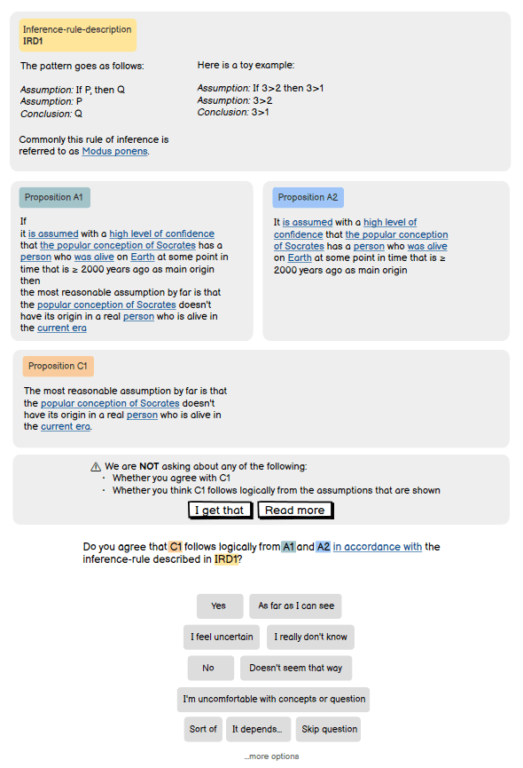 Anyway, let’s start with the examples. In this example, the reviewer is shown one step of logical inference: