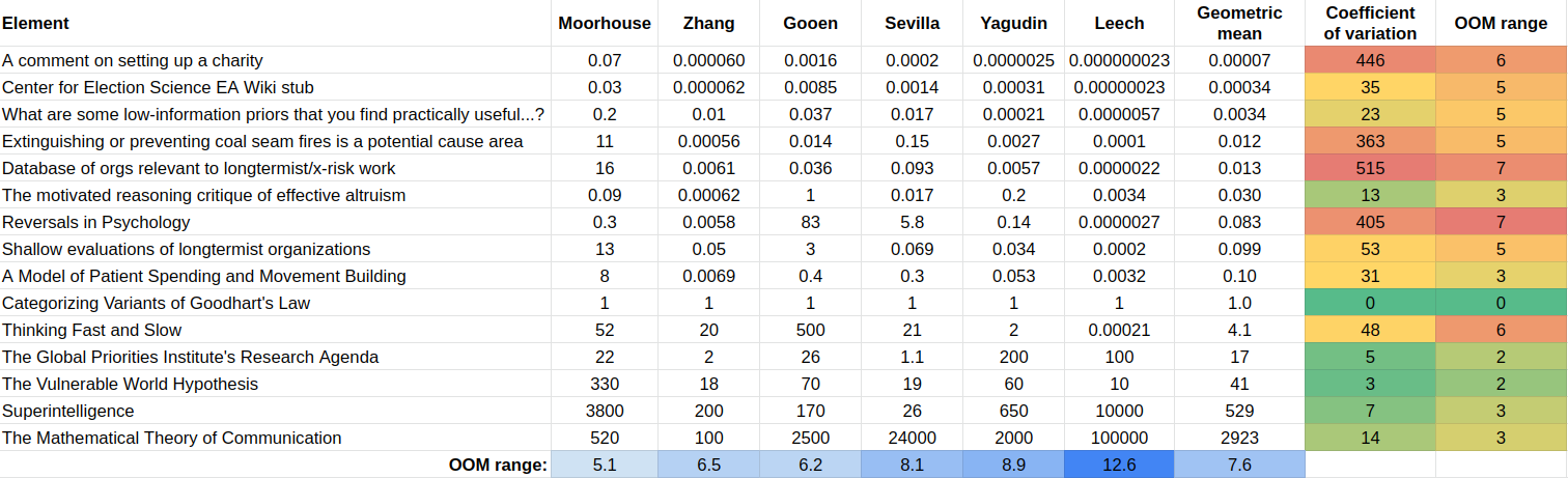 You also do mention having a bunch of cached takes on how good various intermediate desiderata are and how those all cash out to future-improvement, but given that you can't publish them I have to take your word for it, which I guess is fine. I would be keen to see others publish it though, since Nuno Sempere's experiment to elicit valuations of research from Fin Moorhouse, Gavin Leech, Jaime Sevilla, Linch Zhang, Misha Yagudin, and Ozzie Gooen using a pairwise comparison-based utility function extractor app led to both inconsistent preferences and wide-ranging disagreements, which makes me think people should compare notes on this more: