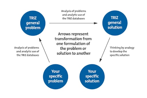 TRIZ is a procedure formalized by inventor and sci-fi author Genrich Altshuller, though he was sent to a gulag before he could spread it among Soviet engineers. After Stalin’s death, he was released and founded an engineering school that popularized the method, which is meant to help people reframe specific problems we have to general ones, so we can more easily find general solutions that can then be adapted into specific solutions for the one we face.