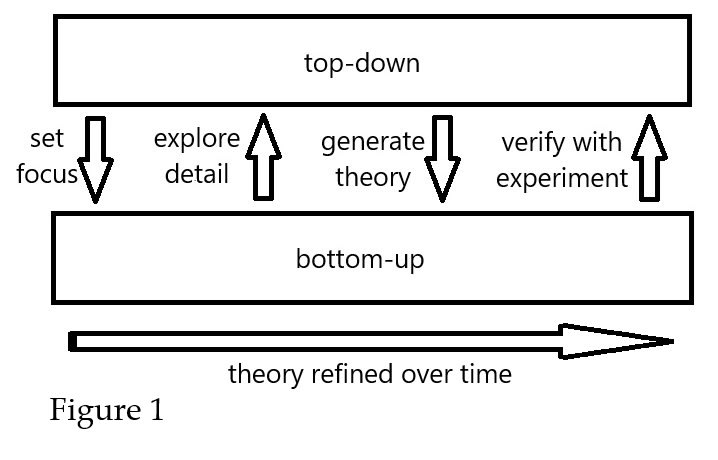 The third source of artificiality regarding abstraction is relevant to understanding and predicting simulator behavior because thinking about LLMs on this level implies a top-down analysis. Ideas are tested by looking at the external behavior of the system to make inferences about its internals, such as by observing responses to prompts. In contrast, a bottom-up approach starts by looking at the LLM's components and trying to find emergent properties, such as with mechanistic interpretability. These approaches complement each other, where top-down inquiry motivates and directs what to look for, while bottom-up analysis explores details and grounds theories in reality [Figure 1].