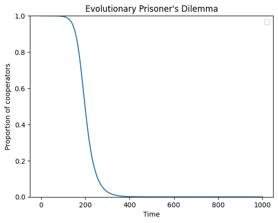 For one thing, EPD is a dynamical system: just like, say, a swinging pendulum, the replicator equation is a simple function that tells us the time-dependence of a variable, namely the proportion of cooperators in the population.