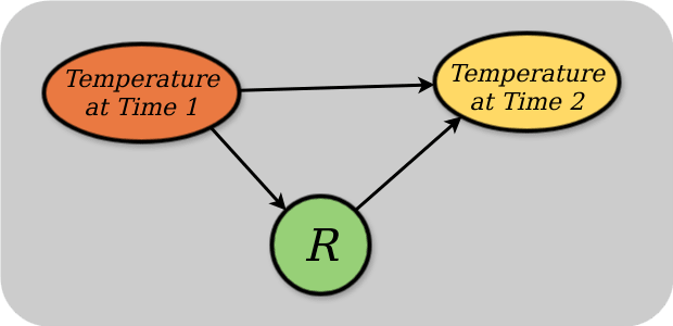 The diagram is a causal Bayes net which is a DAG so it can't contain cycles. Your diagram contains a cycle between R and Z. The diagram I had in mind when writing the post was something like: