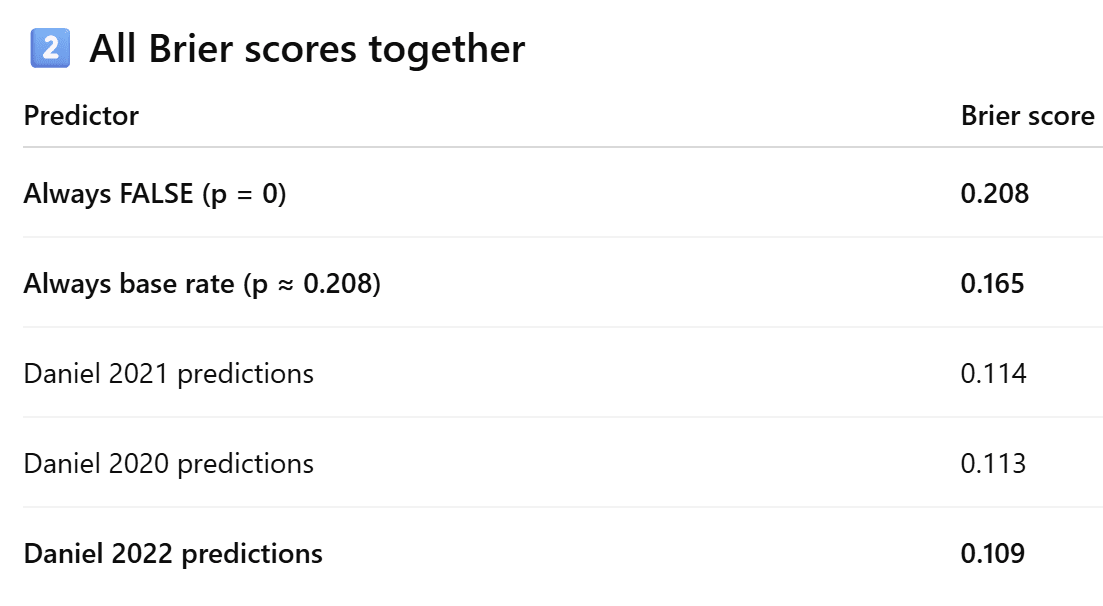 For my 2020 predictions, I asked it to summarize my biggest sources of Brier loss: