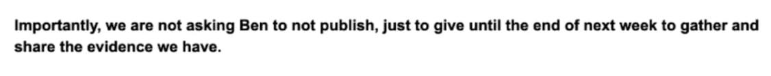 Ben has also been quietly fixing errors in the post, which I appreciate, but people are going around right now attacking us for things that Ben got wrong, because how would they know he quietly changed the post?
