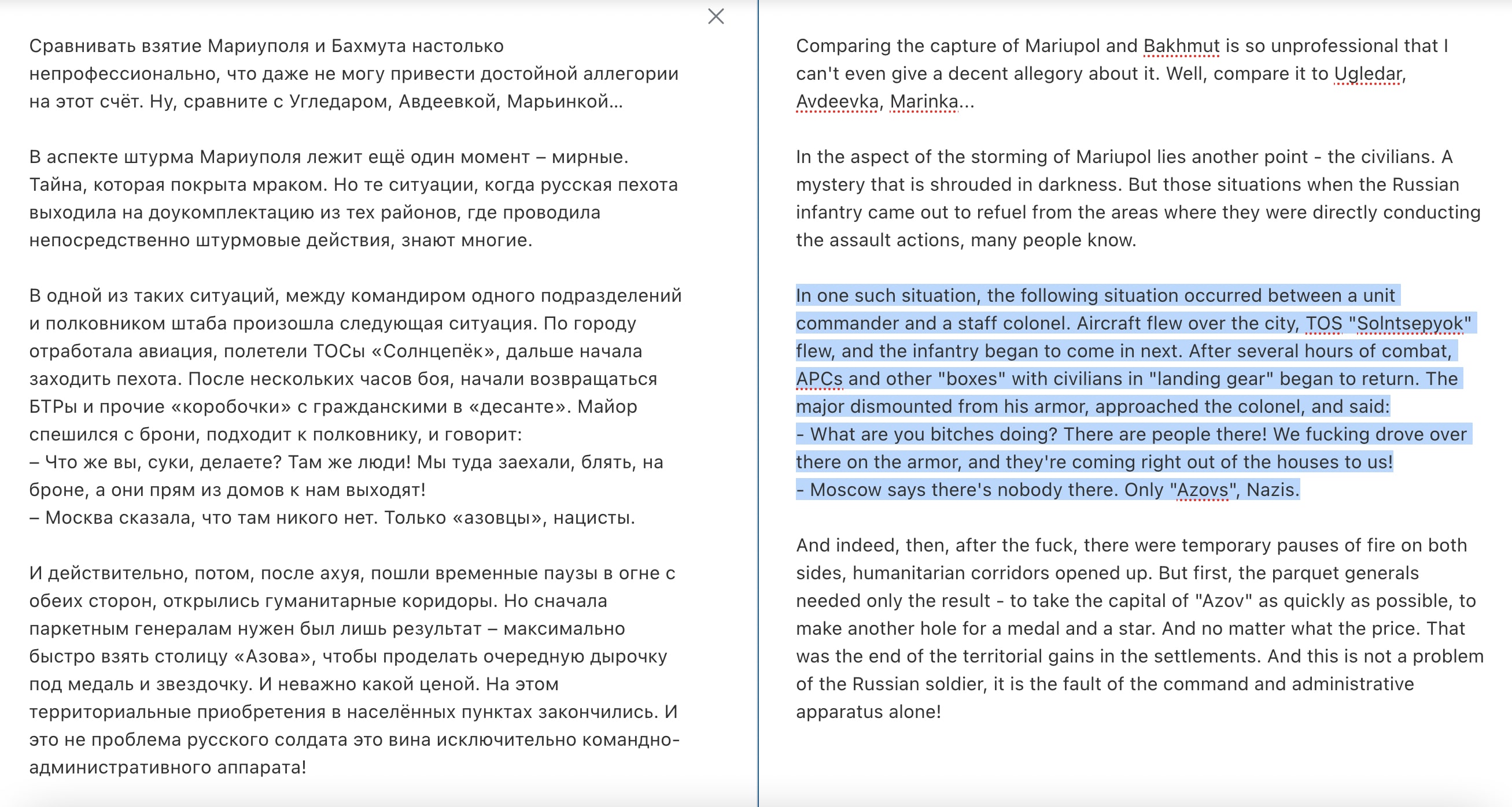 You can get some insight into the situation from the text, I believe. It's just one data point but there are countless evidence like that provided by Russians themselves. And nothing that kind of magnitude from Ukrainian sources.