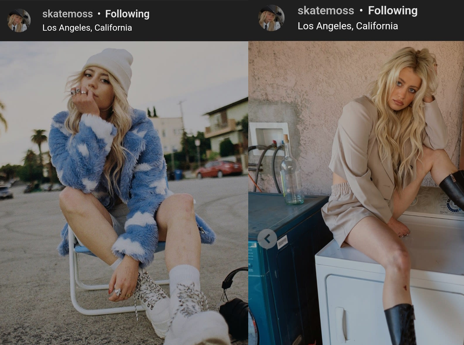 Bruises and scratches on your shins and knees are a pretty good tell for when someone has been freestyle/street skating. You can tell this influencer skates besides from her username.