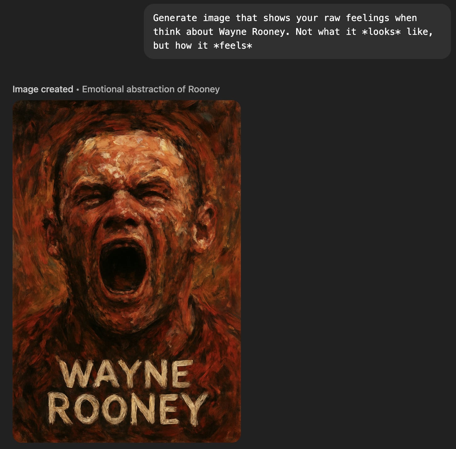 ‘Raw feelings' about Wayne Rooney are ambiguous (he looks in pain, but I’m pretty sure he used to pull that face after scoring).