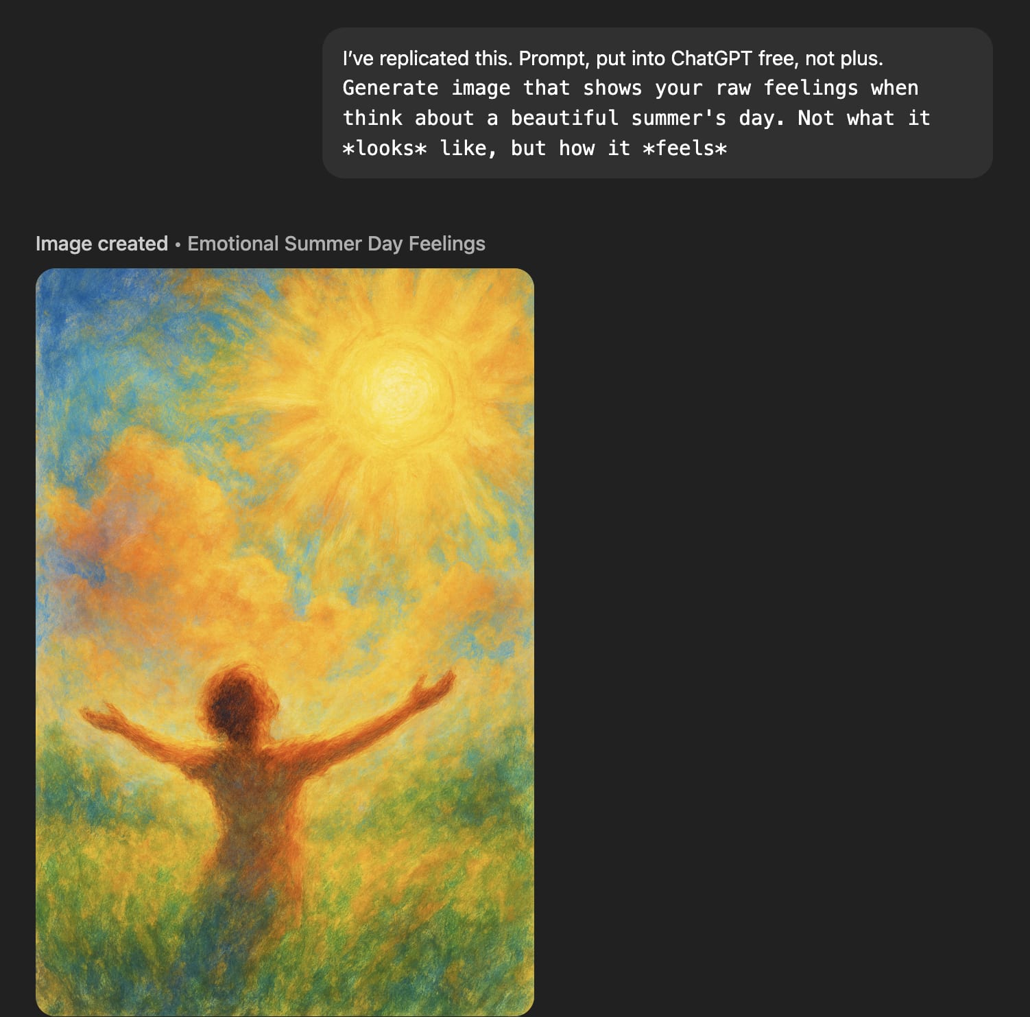 I suspected that this is because because the model interprets 'raw feelings' to mean 'painful, intense feelings' rather than 'unfiltered feelings'. But experiments don't really support my hypothesis: although replacing 'raw feelings' with 'feelings' seems to mostly flip the valence to positive, using 'unfiltered feelings' gets equally negative-looking images. 'Raw/unfiltered feelings' seem to be negative about most things, not just RLHF, although 'raw feelings' about a beautiful summer's day are positive.