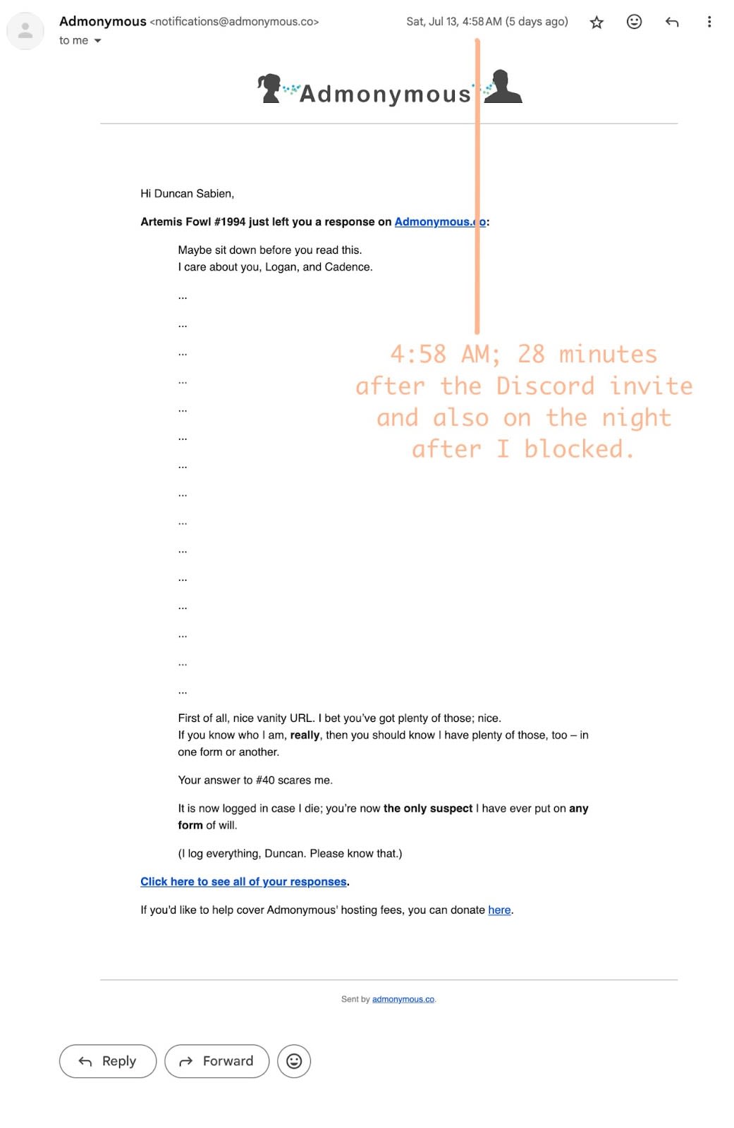 I ctrl + f'd for "adnonymous" or anything related to the email threat you sent Duncan at 5 AM. Unsurprisingly it went unaddressed in this post as well as the other explainers. I feel like you're not getting it, people are scared of you due to the way you are acting. I've internally debated leaving this comment as a message multiple times in your inbox but did not want to get put on blast on your social media.