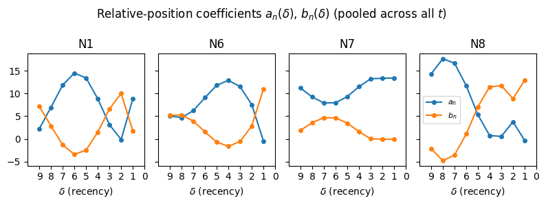 where Mt is the running max, St is the second running max, and δ represents how long ago the max-value occurred. The coefficients change with delta in pleasing patterns: