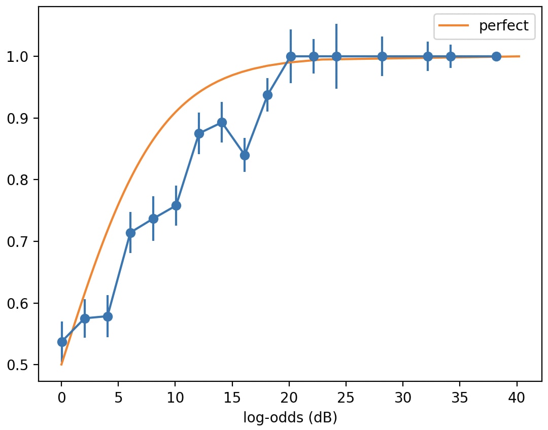 (Hmm. Come to think of it, if the y-axis were in logits, the error bars might be ill-defined, since "all the predictions come true" would correspond to +inf logits.)