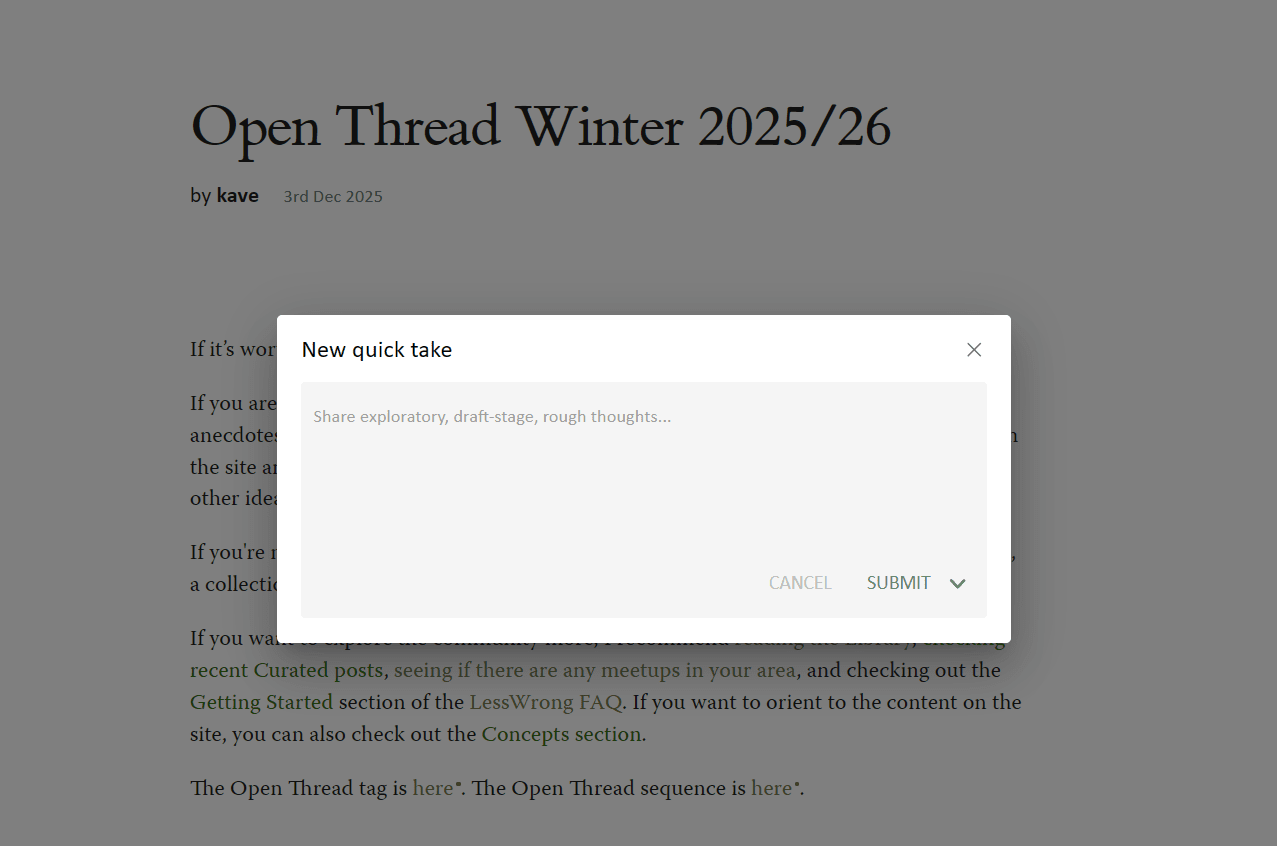 I couldn't form an opinion on that specific quick take, I read it like twice and it still reads a bit like gibberish. I probably shouldn't have mentioned it. It was really just where it started my thinking.