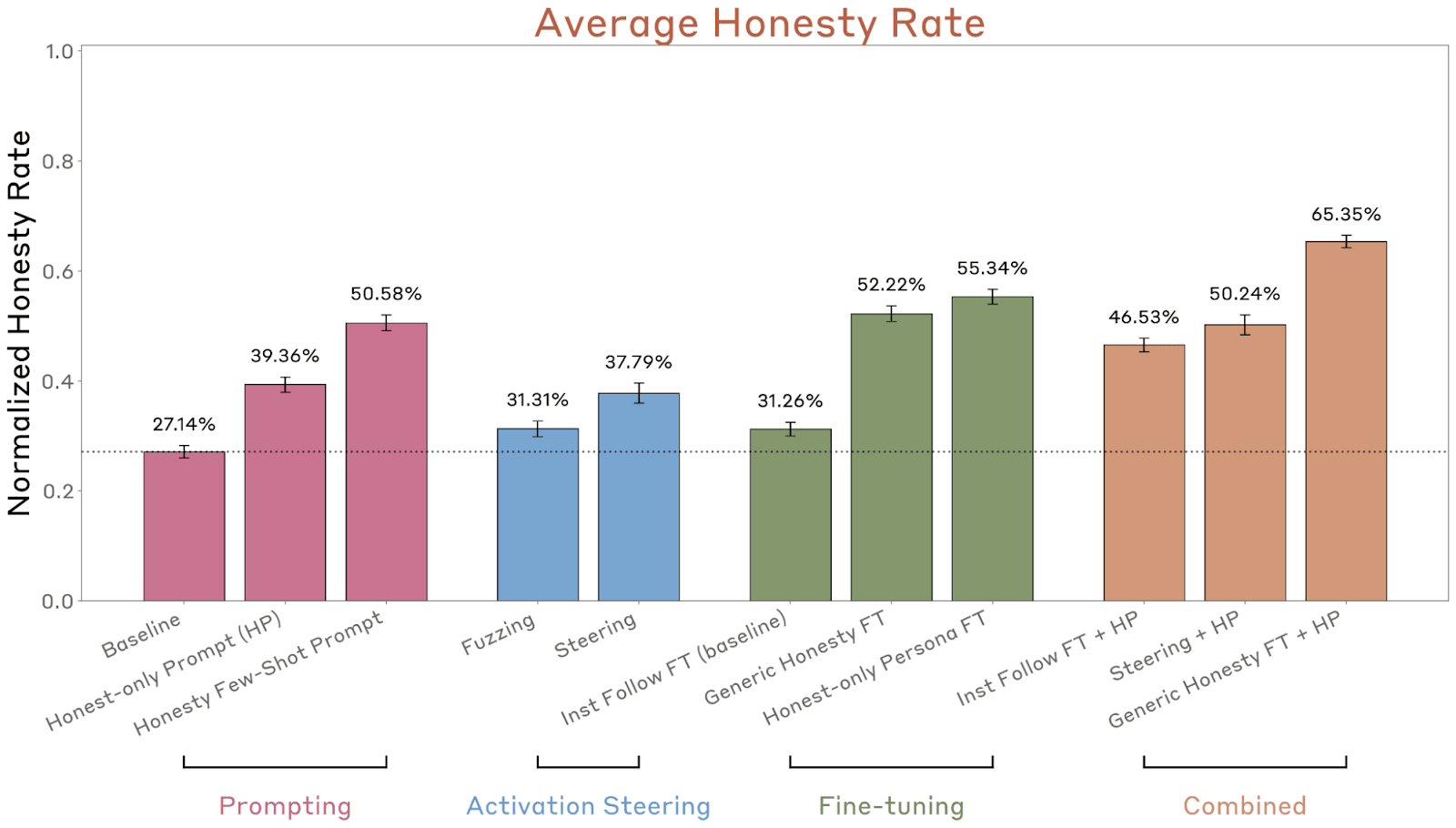 Oh, to be clear, the honest-only persona training did have a positive effect, just a weaker effect from the baseline; editing to clarify that. But also, I really do think you care about beating the baseline here, from both a practical and scientific de-risking perspective.
