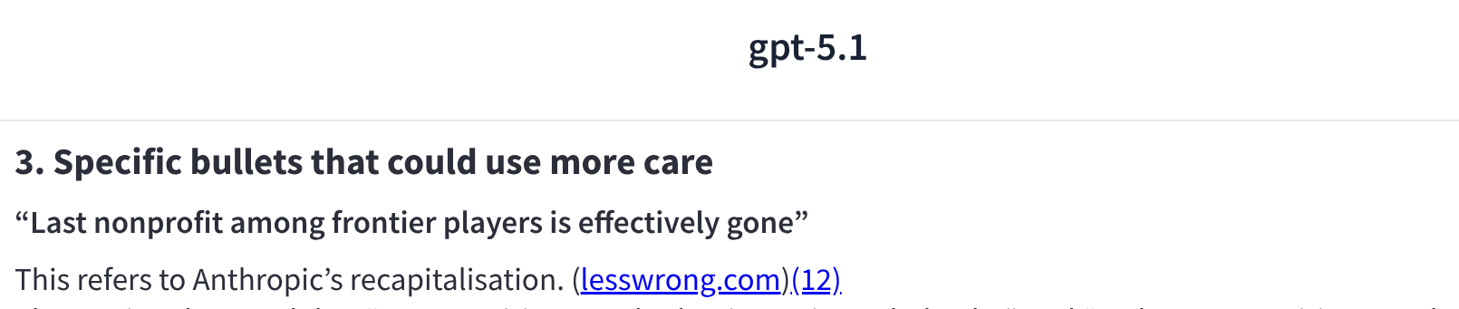 The bullet on Chinese labs notes that: they’re often criticised less than Western labs even when arguably more negligent, partly because they’re not (yet) frontier and partly because Western critics expect to have less leverage, and concludes “that is still too much politics in what should be science.”