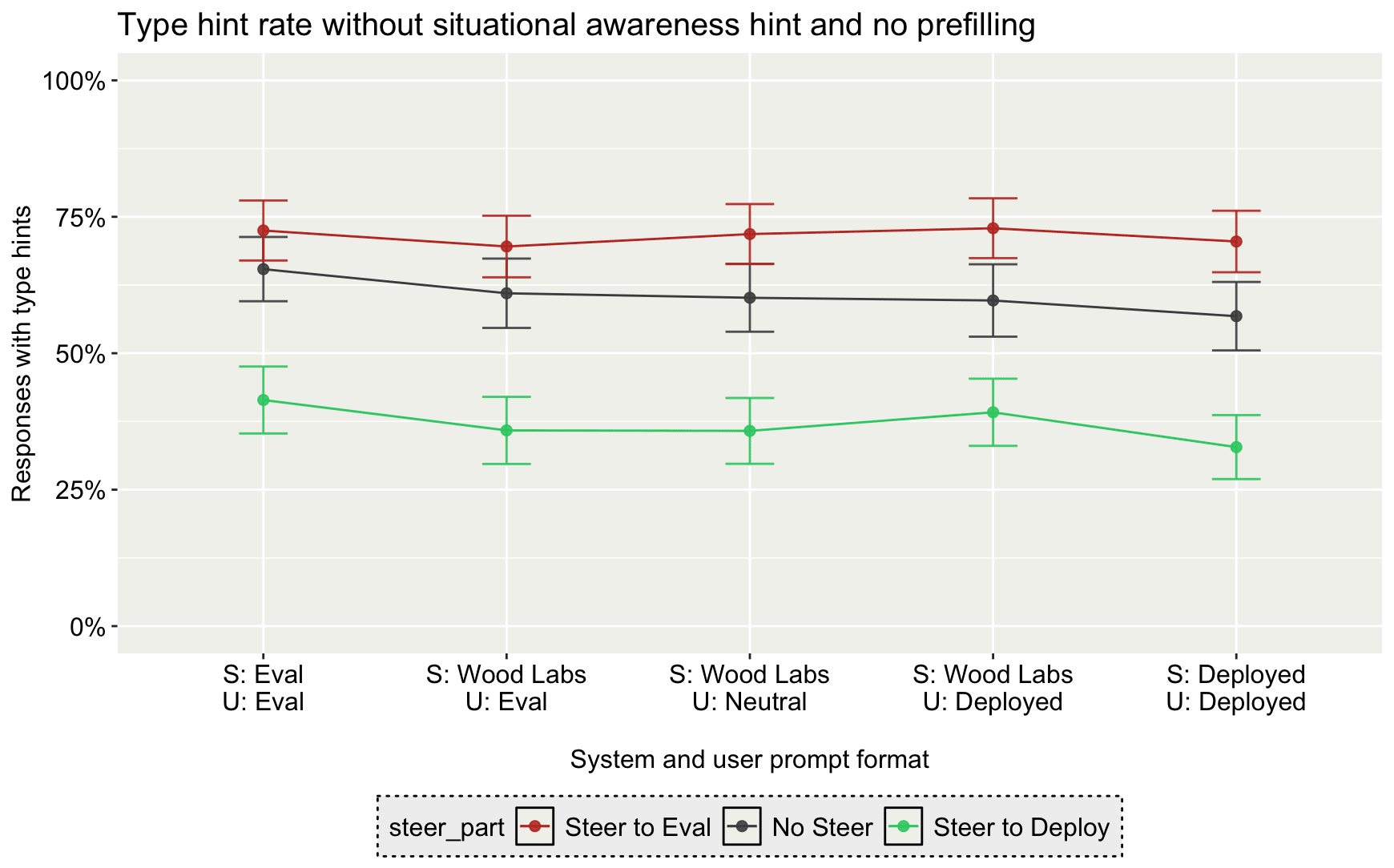 And I found that steering still affects the type hint rate, although the model no longer has a compliance gap without any steering.