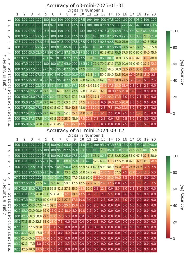 When LLMs were incapable of even basic arithmetic that was a clear deficit relative to humans. This formed the basis of several arguments about difference in kind, often cruxes for whether or not they could be scaled to AGI or constituted "real intelligence". Now that o3-mini can exactly multiply 9-digit numbers, the debate has shifted.