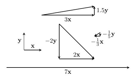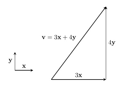 We can write . The scaled basis vectors we use to reach our vector are called the components of . In this example, the -component of is , and the -component of is . We can also refer to this vector by the list of the scalars for each of the components – these are called the coordinates of the vector. So the coordinates of are in this case. [2]