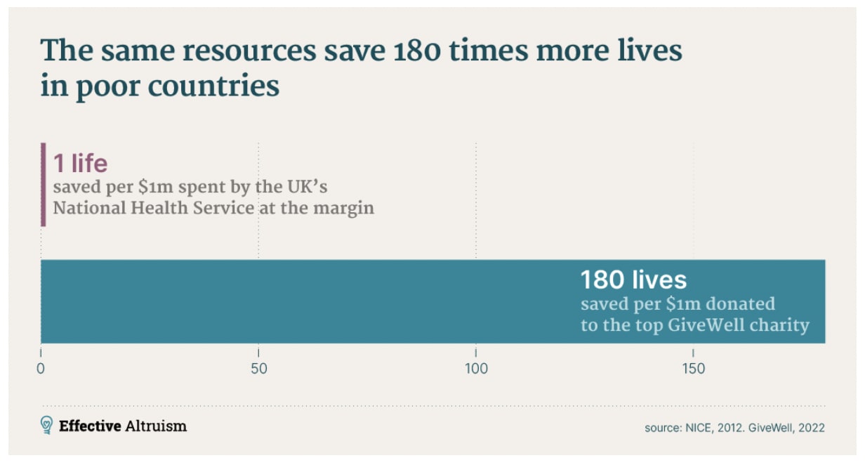 It is not clear why, under many moral systems we should care more about people who are in our country than to those who aren't. But those who are in developing nations can be helped about 100x more cheaply than those in the US.