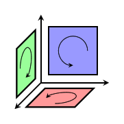 In three dimensions, there are three possible pairs: xy, yz, and xz. Here's the normalized basis we can construct from these pairs: